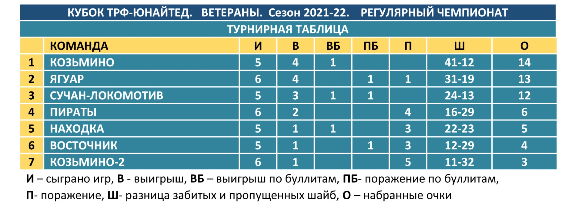 Турнир ветеранов (40+). Таблица результатов сезона 2021-22