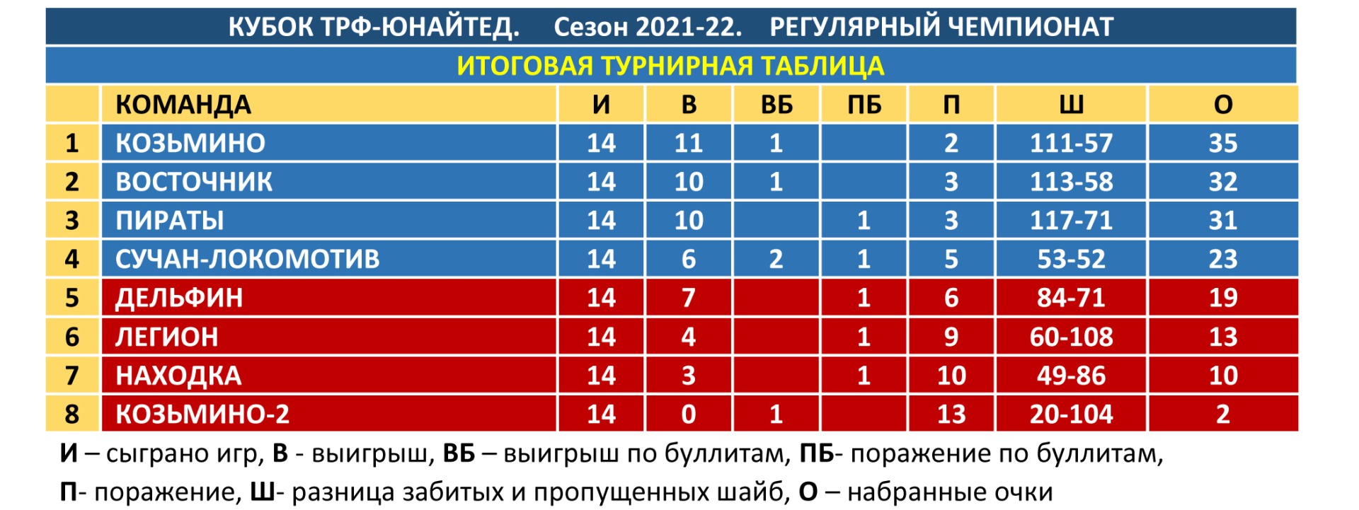 Турнирная таблица регулярного чемпионата НЛХЛ сезона 2021-22