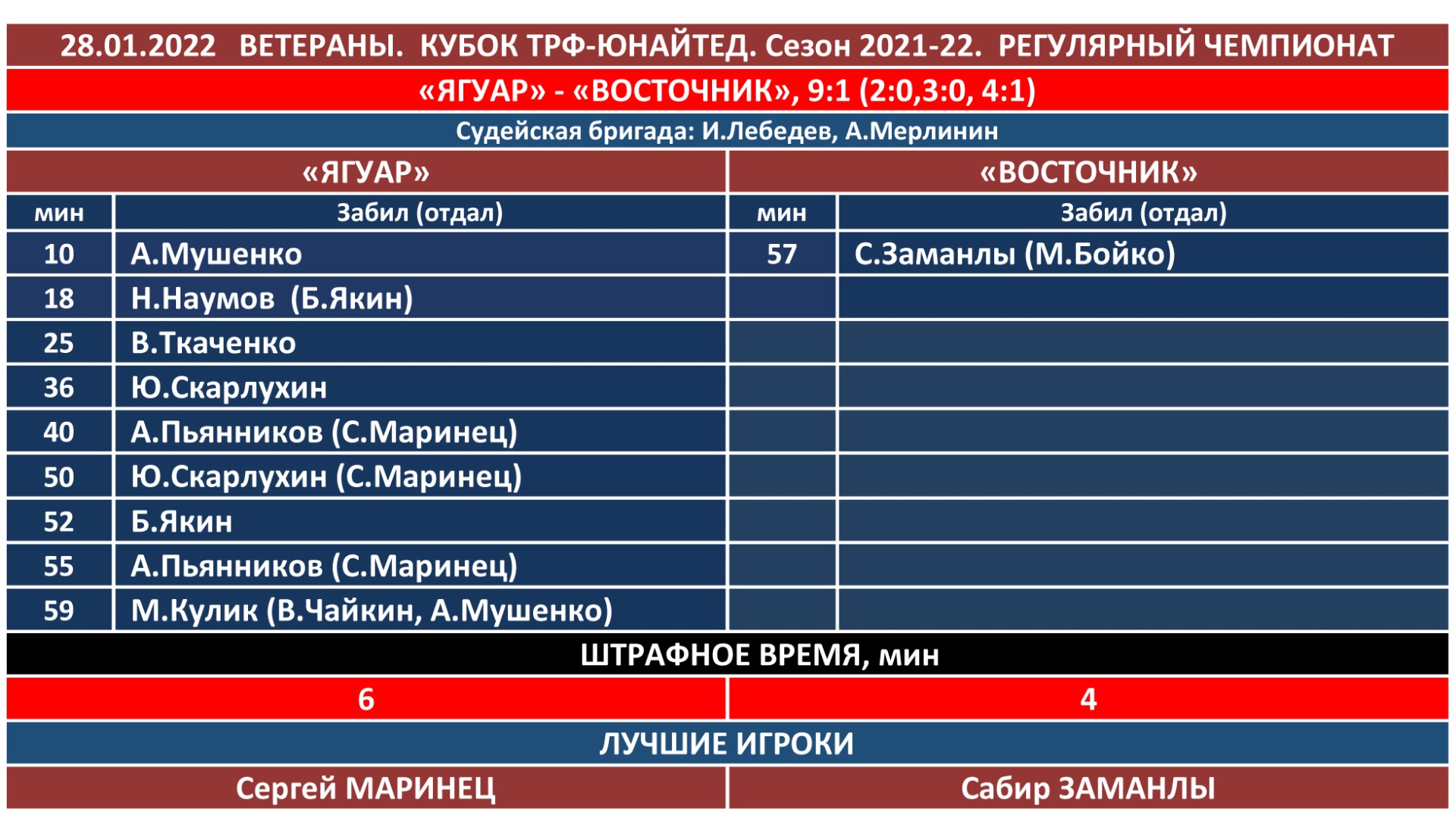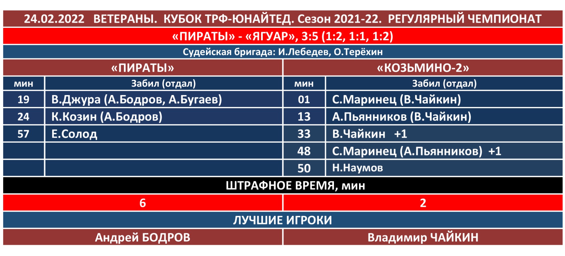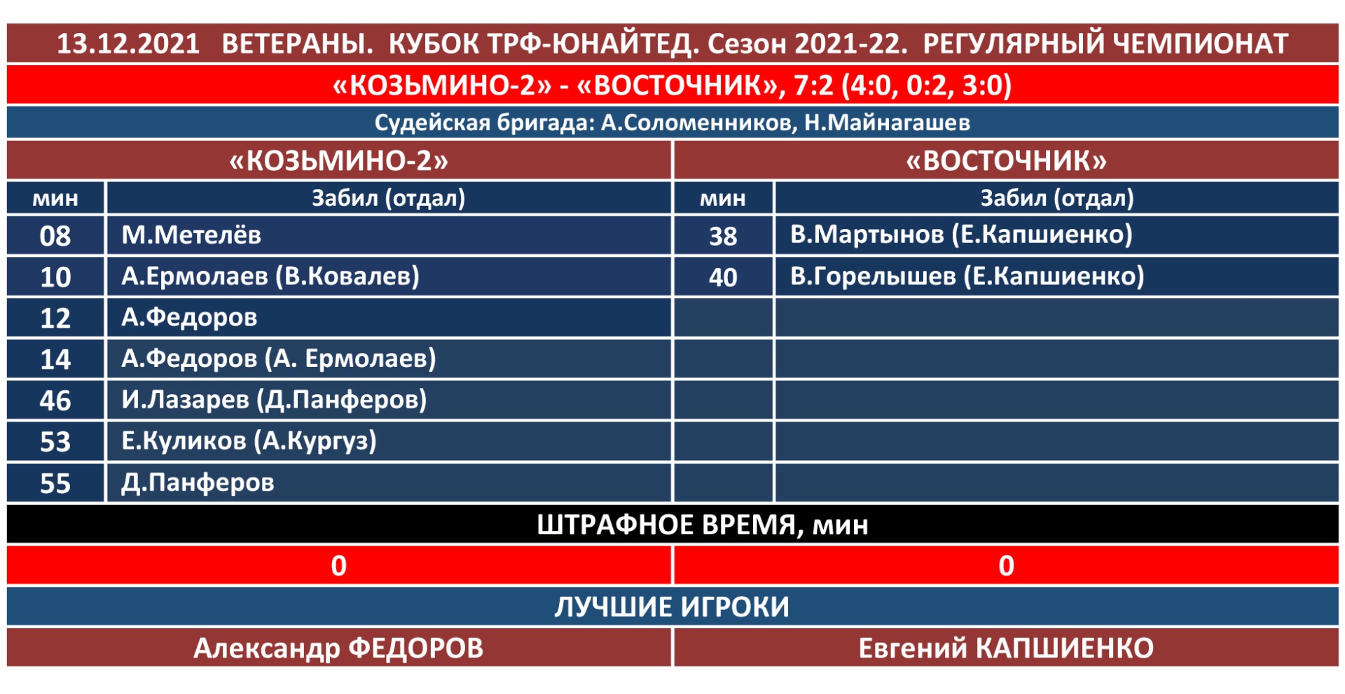 ВЕТЕРАНЫ НЛХЛ. СЕЗОН 2021-22. РЕЗУЛЬТАТЫ.